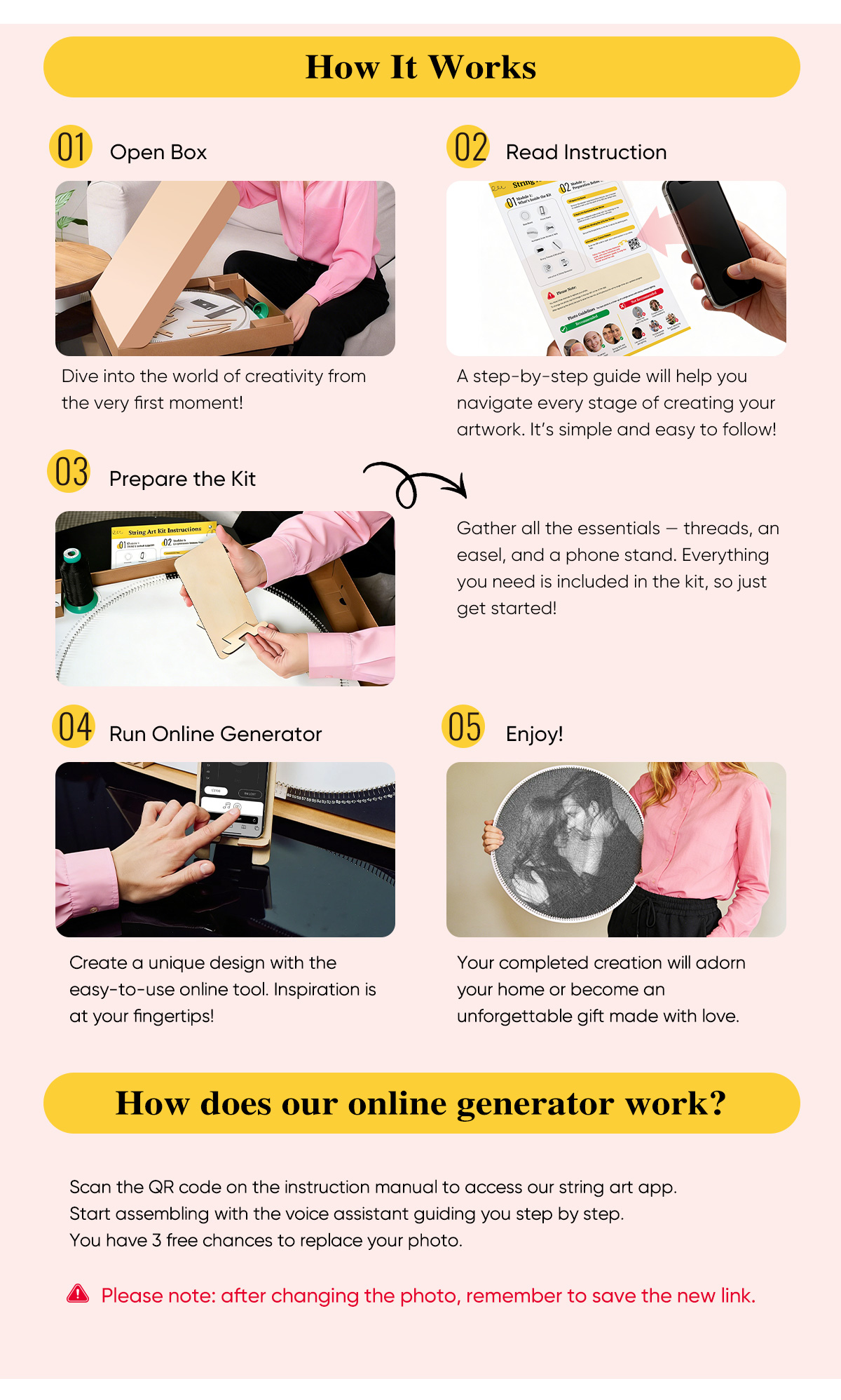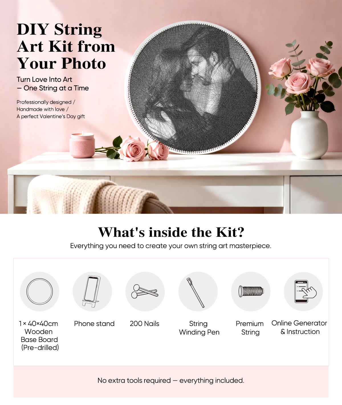 Create a stunning 40cm (16-inch) round photo string art with ease.