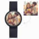 Personalized Photo Watch, Touch Illuminated Watch Blue Leather Strap Couple's Gift