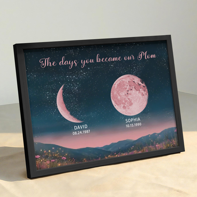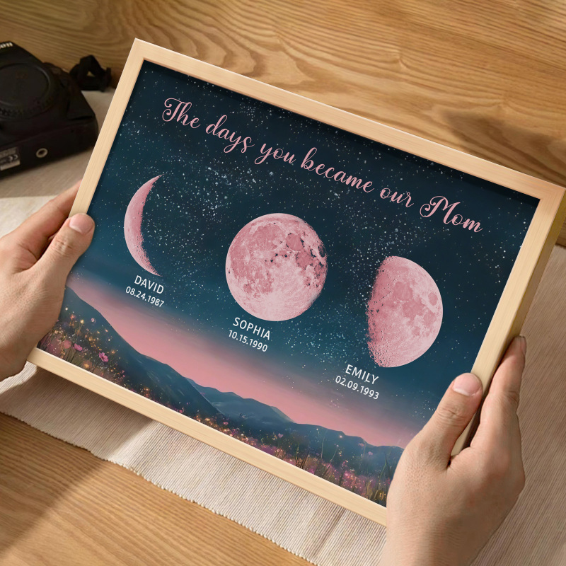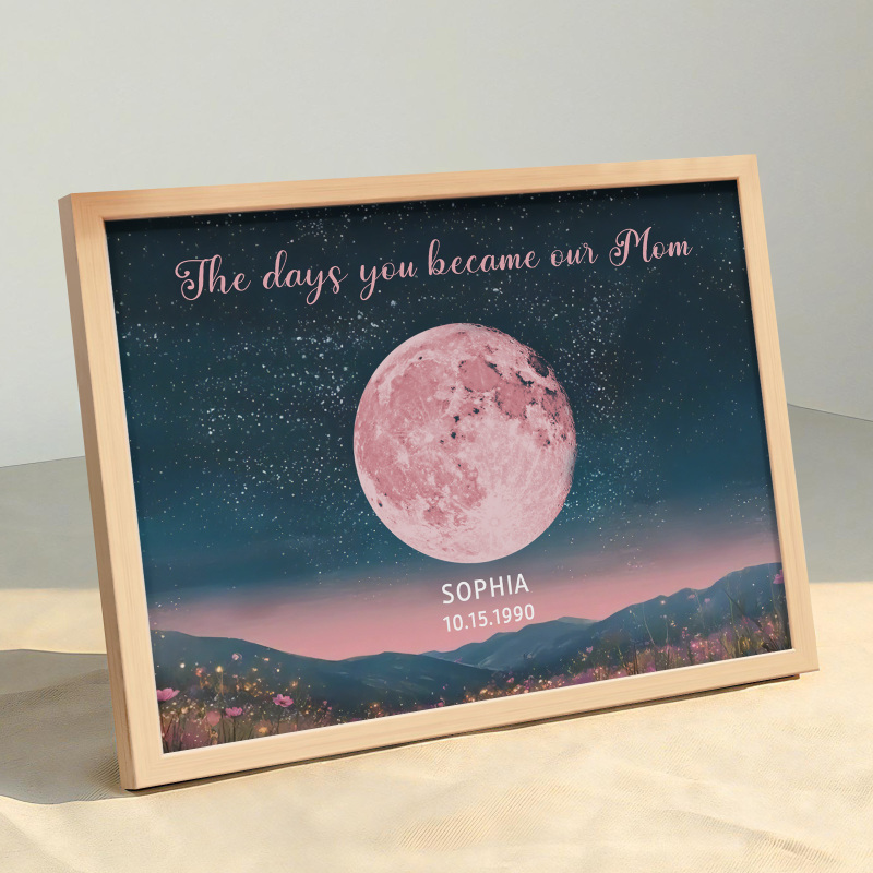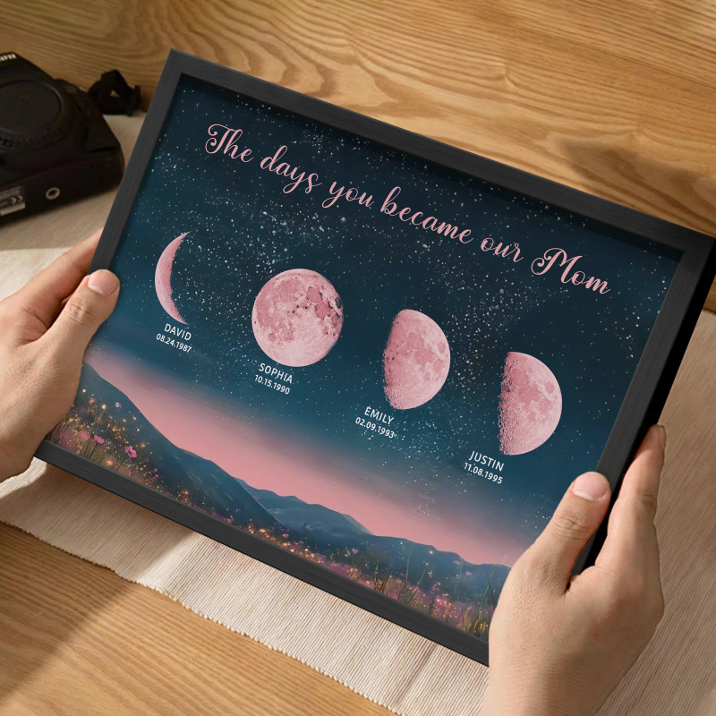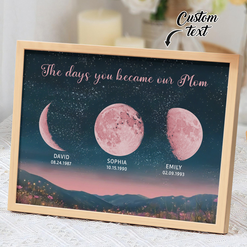 Personalized Pink Moon Phase Custom Birth Moon Beautiful Hill At Night With Kids Names Ideal Gifts for Mother's Day Gifts
