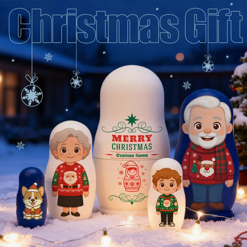 Personalized Portrait Nesting Doll with Text Custom Photo Family Portrait Cartoon Style Gift Photo Christmas Gift