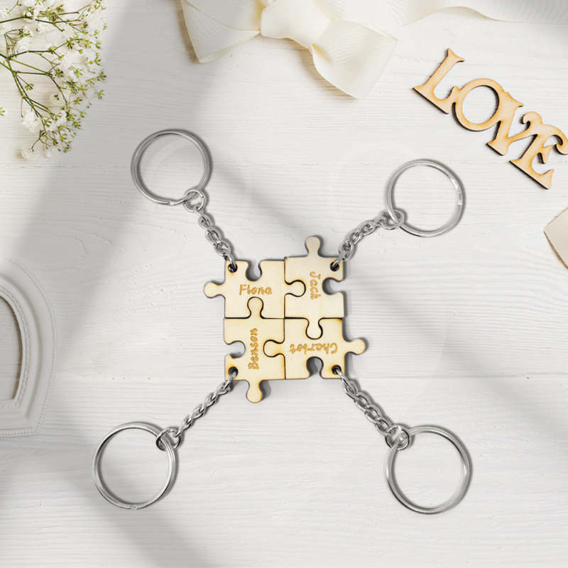 This is a lovely personalized keychain, including 4 puzzle parts keychains. Personalized your special keychain to your family. Carve your name on it. Take the keychain with you and you will feel connected to them. This will be the best gift for them on anniversaries, birthdays, etc.