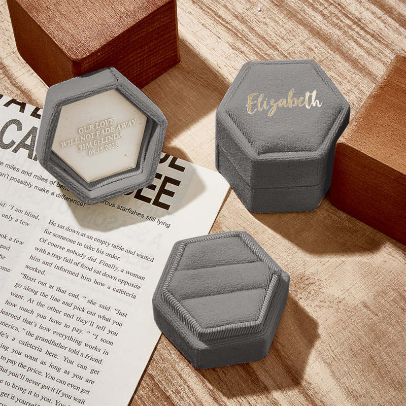 Our ring box is a luxurious and elegant accessory to store and display your precious rings. Made from high-quality material, it has a soft and smooth texture that provides gentle cushioning for your rings, preventing them from scratches and damage. The ring box adds a touch of glamour to any dressing table or jewelry collection. It is not only a practical storage solution but also a beautiful decorative piece that showcases the beauty and value of your rings.