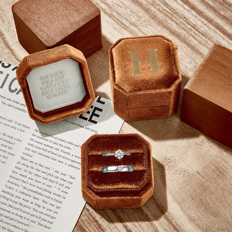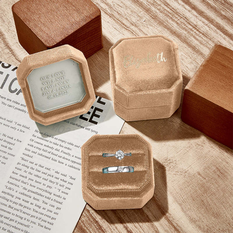 Our ring box is a luxurious and elegant accessory to store and display your precious rings. Made from high-quality material, it has a soft and smooth texture that provides gentle cushioning for your rings, preventing them from scratches and damage. The ring box adds a touch of glamour to any dressing table or jewelry collection. It is not only a practical storage solution but also a beautiful decorative piece that showcases the beauty and value of your rings.
