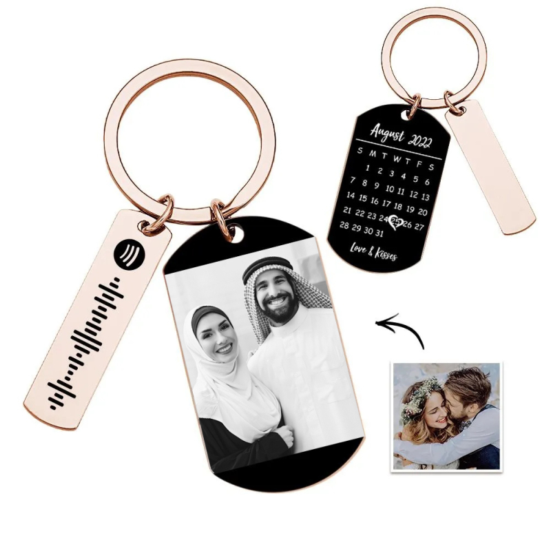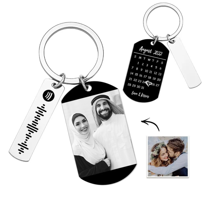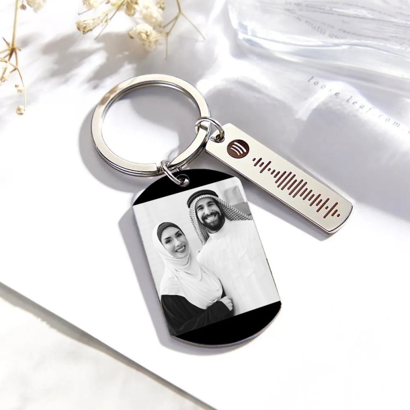سلسلة مفاتيح Spotify مخصصة للصور والموسيقى رمز الأغنية للأزواج هدايا حلقة مفاتيح للصور لصديقها