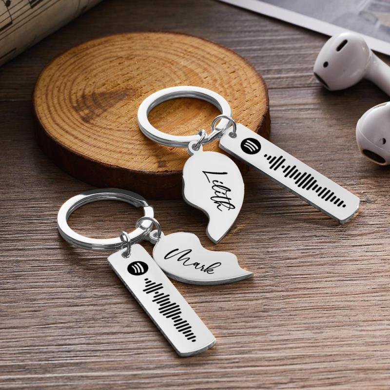 Personalized Music Spotify Scan Code Couple Heart Shape Keychain.