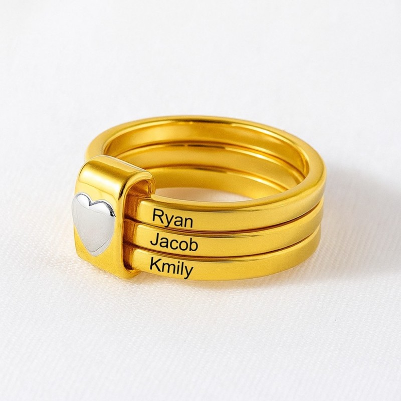 This personalized sterling silver stacking ring is beautifully engraved with 2–5 names and accented by a delicate heart design, symbolizing love and connection.