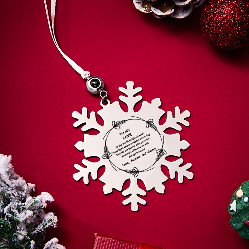 Personalized Photo and Text Snowflake Projection Ornaments Christmas Tree Decoration Engraving Ornaments for Christmas Gifts
