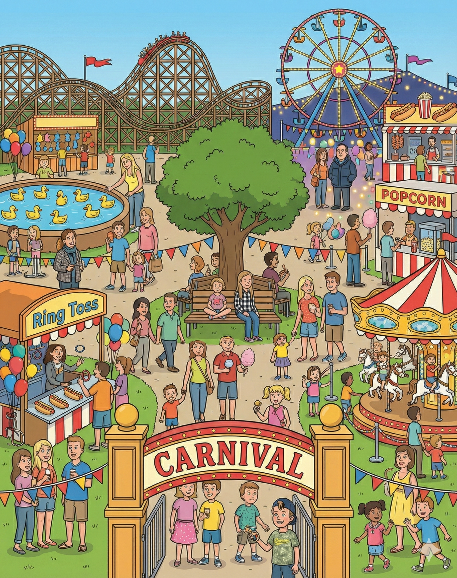 Choose your favorite scene and upload clear, front-facing individual photos. We will transform each photo into a cartoon character and cleverly integrate it into a vibrant scene illustration, resulting in a personalized, lively, and lifelike final illustration.
