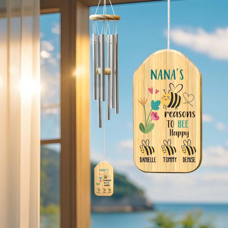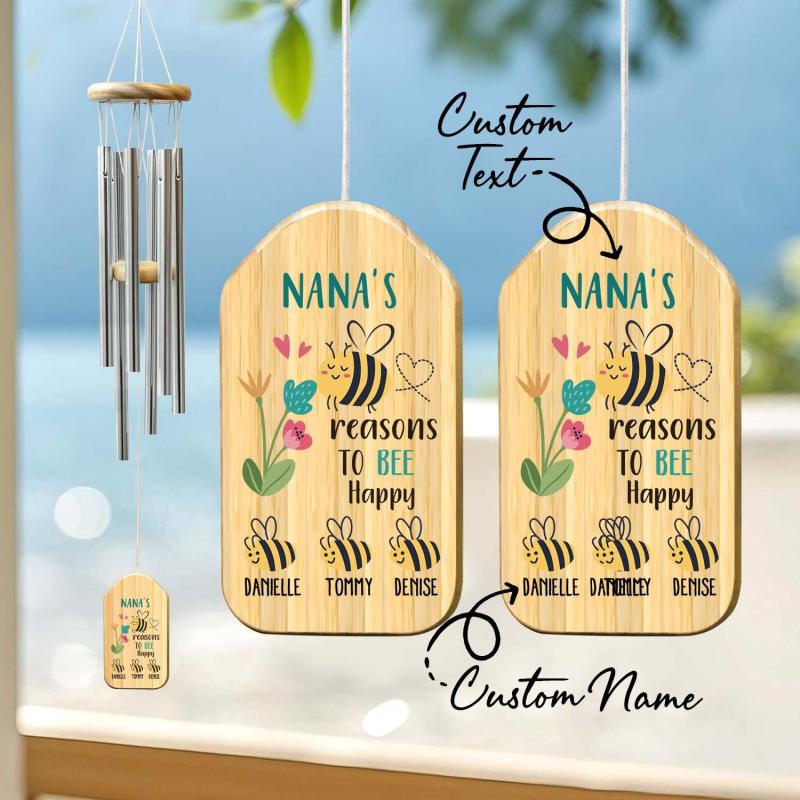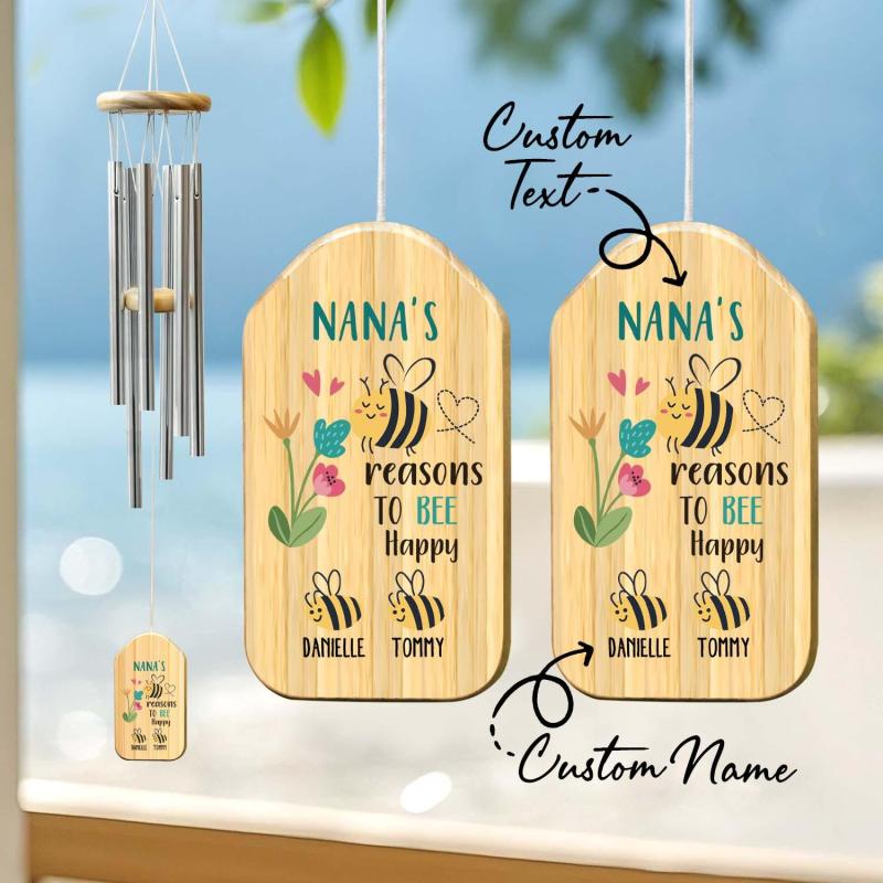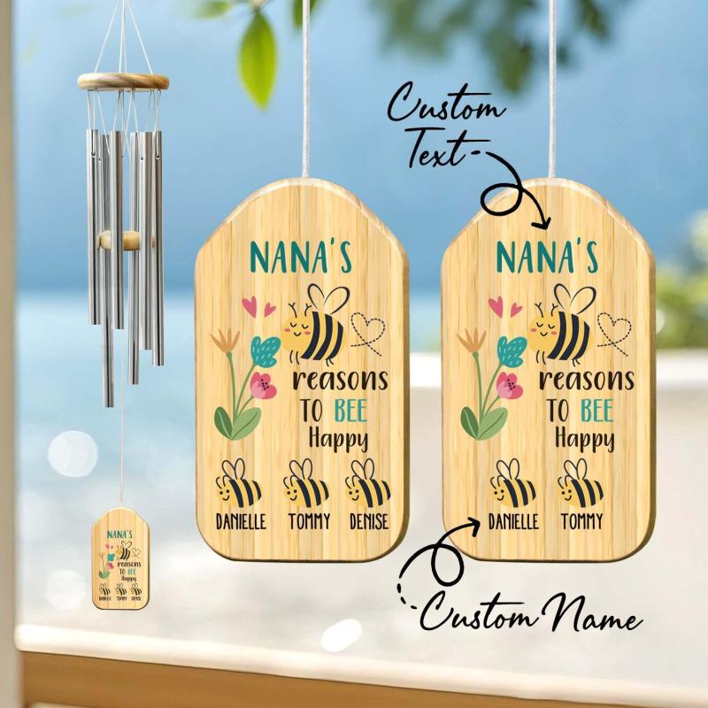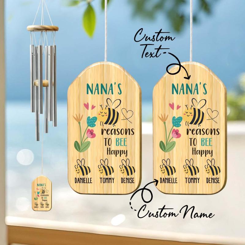 A personalized Wind Chime for Nana-- the name is customizable and we can print up to 3 names on both sides. (Up to 6 total)