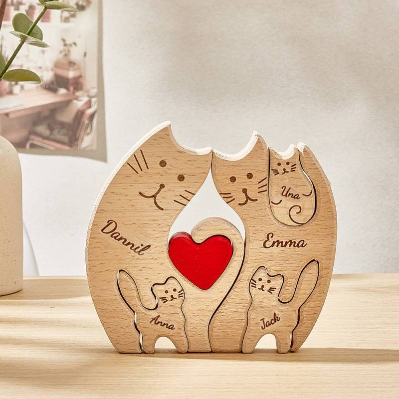 Commemorate the unique bond and treasured memories of your family with our personalized custom Cat-shaped wooden art puzzle. This thoughtful gift allows you to display the names of each family member, creating a special and meaningful keepsake that celebrates your family's journey.