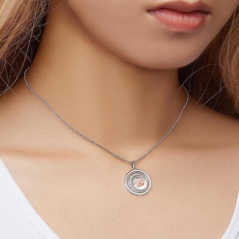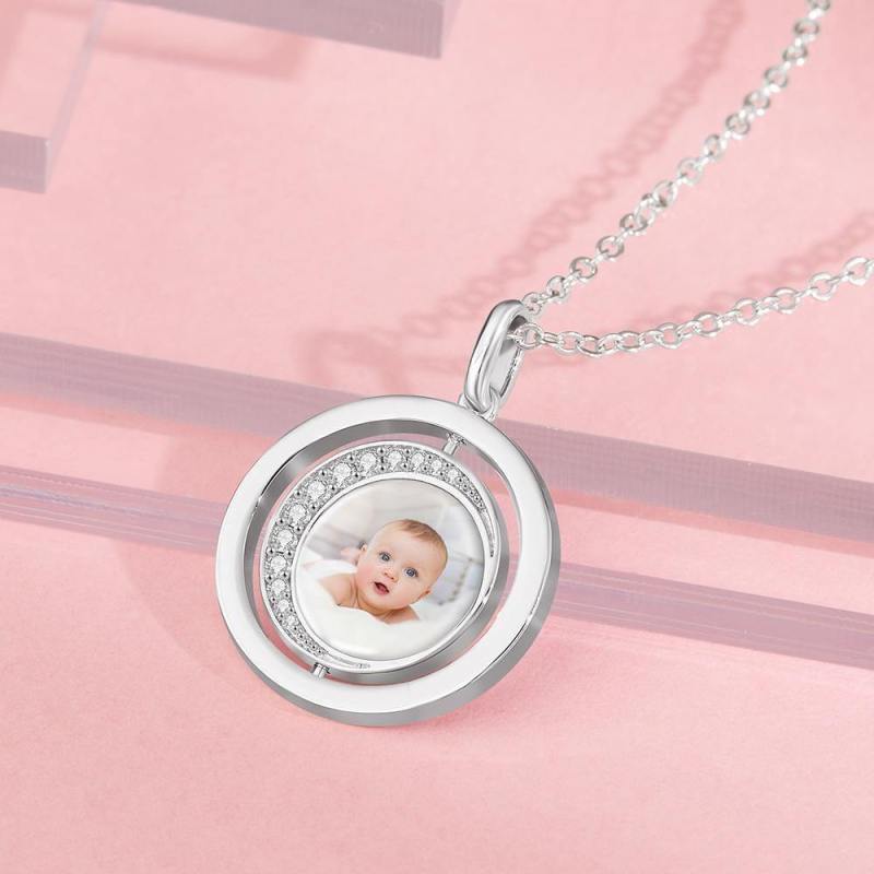 Photo Engraved Necklace Blessing Coin Memorial Gifts for Her