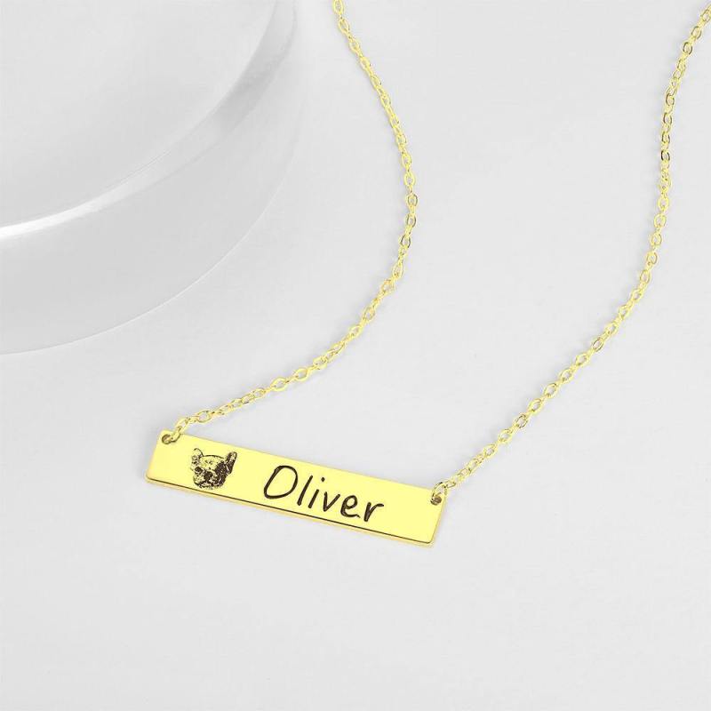 Photo Engraving is the most loved new trend as it allows you to memorialize your favorite photo into a piece of jewelry you can wear every day. This Photo Engraved Necklace is the perfect backdrop for your favorite photo . Add an extra level of personalization by placing an engraving on the back of this photo engraved pendant. The perfect thoughtful, fun, and unique gift for any occasion! Soufeel has a ton of customized jewelry options that are reasonably priced and make for great gifts for all sorts of occasions like birthdays, holidays, anniversaries. Photo Engraved Necklace, Portrait Bar Necklace 14K Gold Plated - Golden.