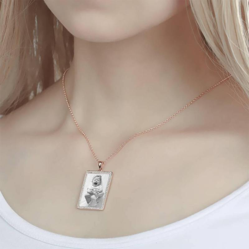 Personalized Soufeel Stainless Steel Tag Photo Pendant is the perfect way to keep your greatest memories close to the soul. This custom photo necklace is made of sturdy, stainless steel that will never tarnish so you can hold it close for many years to come. The perfect thoughtful, fun, and unique gift for any occasion! Soufeel has a ton of customized jewelry options that are reasonably priced and make for great gifts for all sorts of occasions like birthdays, holidays, anniversaries. The perfect thoughtful, fun, and unique gift for any pet lover on any occasion! Holidays, birthdays, weddings, or anniversaries - you name it, they'll LOVE it! Our artists will cut, crop, and place your photo on a beautiful & timeless necklace. Photo Engraved Necklace Rhinestone Crystal, Photo Necklace Best Gift Rose Gold Plated - Photocopying.