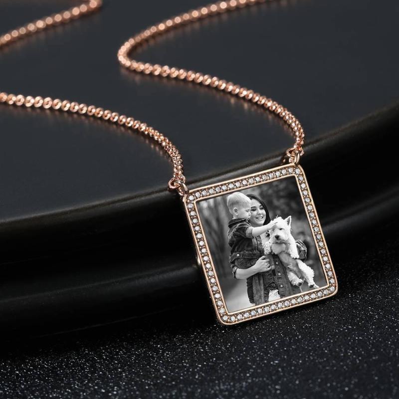 Personalized Soufeel Stainless Steel Tag Photo Pendant is the perfect way to keep your greatest memories close to the soul. This custom photo necklace is made of sturdy, stainless steel that will never tarnish so you can hold it close for many years to come. The perfect thoughtful, fun, and unique gift for any occasion! Soufeel has a ton of customized jewelry options that are reasonably priced and make for great gifts for all sorts of occasions like birthdays, holidays, anniversaries. The perfect thoughtful, fun, and unique gift for any pet lover on any occasion! Holidays, birthdays, weddings, or anniversaries - you name it, they'll LOVE it! Our artists will cut, crop, and place your photo on a beautiful & timeless necklace. Photo Engraved Necklace Rhinestone Crystal Square Shape Unique Necklace Rose Gold Plated - Photocopying.