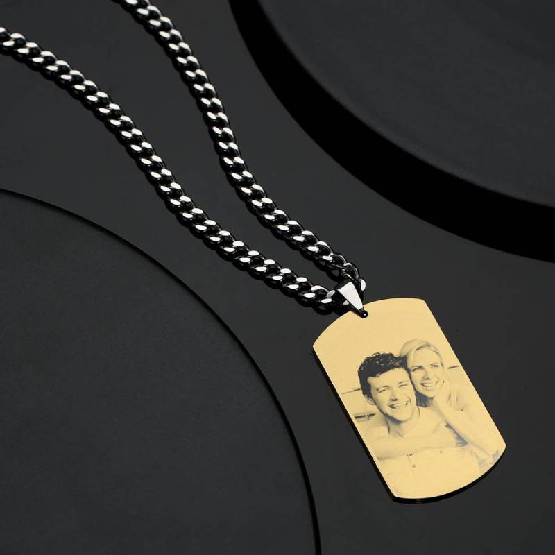 Photo Engraved Tag Necklace With Engraving 18k Gold Plated Stainless Steel