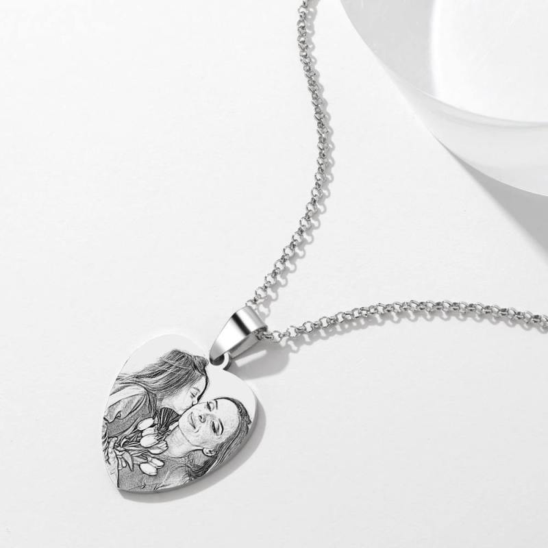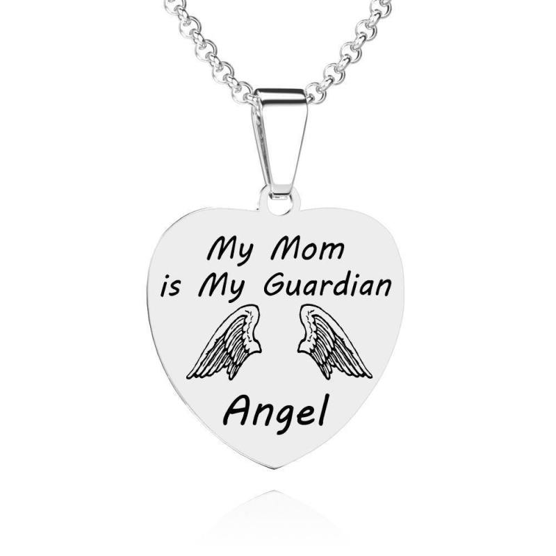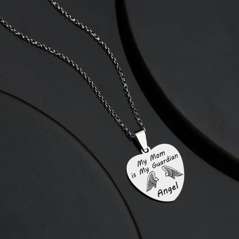 Photo Engraved Tag Necklace with Engraving Stainless Steel with Wings Gifts for Mother's Day
