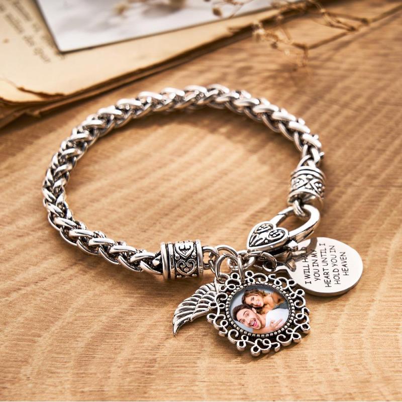 This stainless steel photo memorial bracelet is the perfect way to keep a loved one close. Crafted from stainless steel and featuring an angel wing design, it's an elegant piece of jewelry and a thoughtful way to honor a loss. Capture a memory on this beautiful photo memory gift for a treasured keepsake.