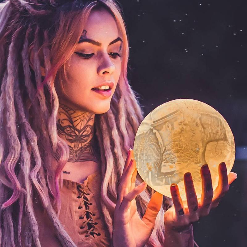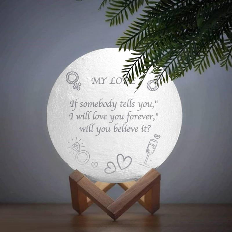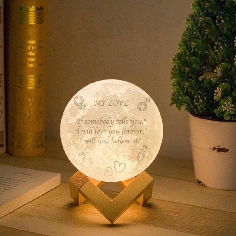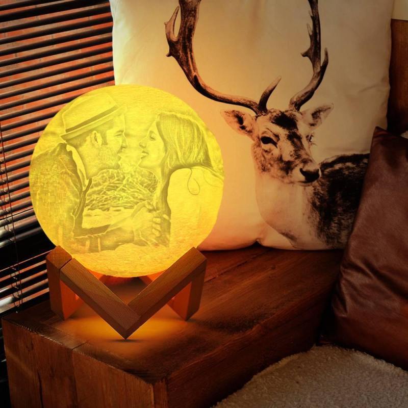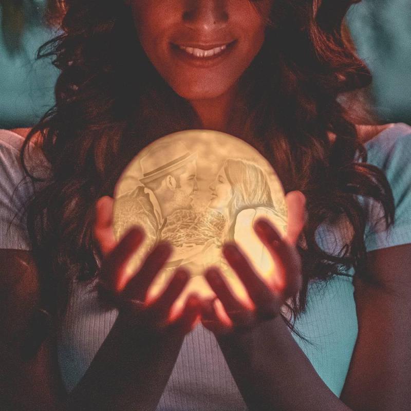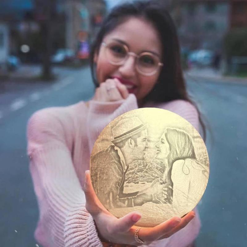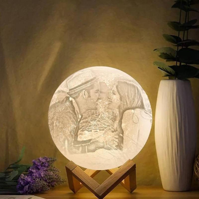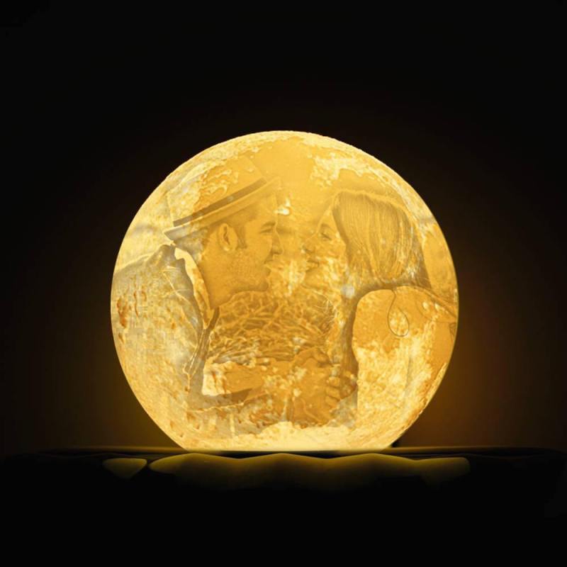 Photo Moon Lamp, Custom 3D Photo Light, Lamp Moon Love You - Touch Two Colors 15cm Available