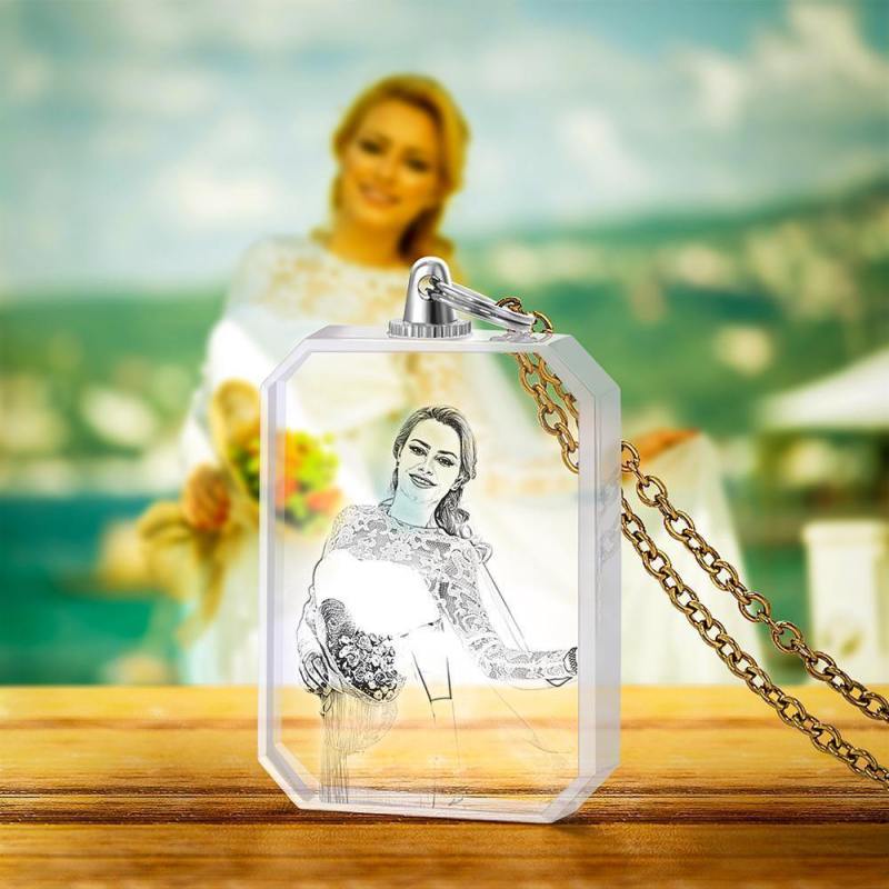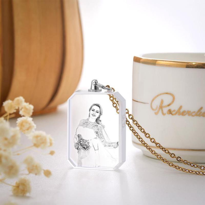 Photo Necklace Laser Engraved Photo Crystal Necklace Golden Color Chain Gifts Ideas Gifts Aniversary Day