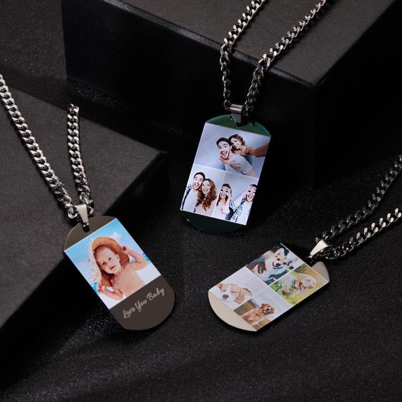 Photo Necklace with Four Pictures Colorful Effect Blue