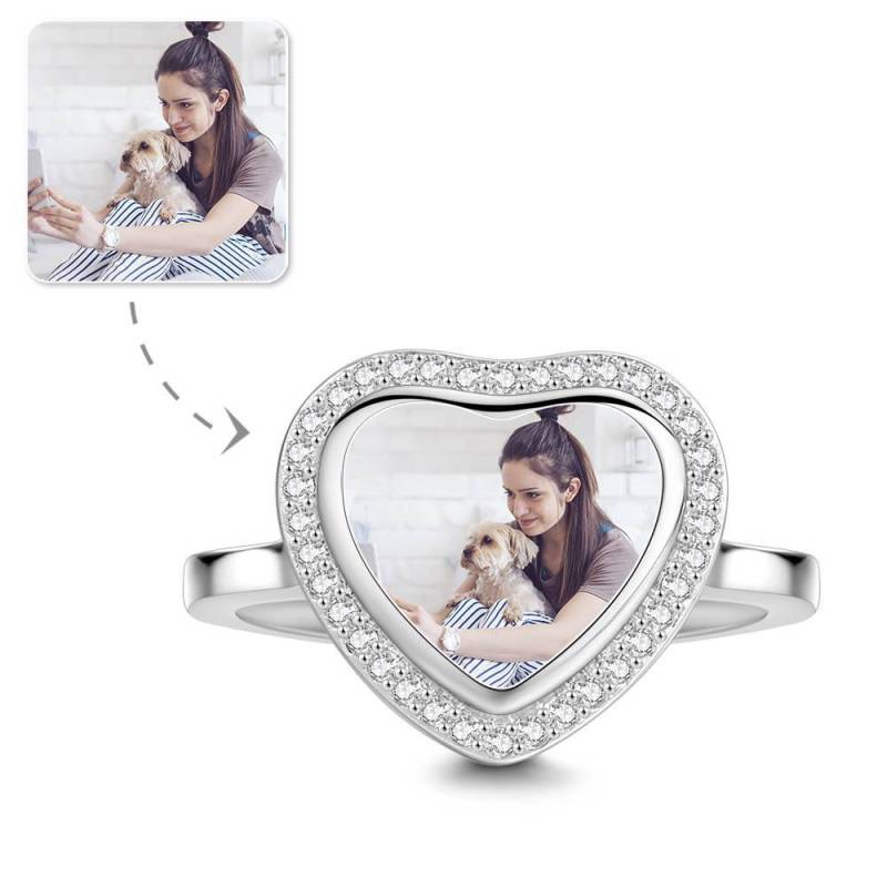 Photo Ring Silver Heart Unique Gift