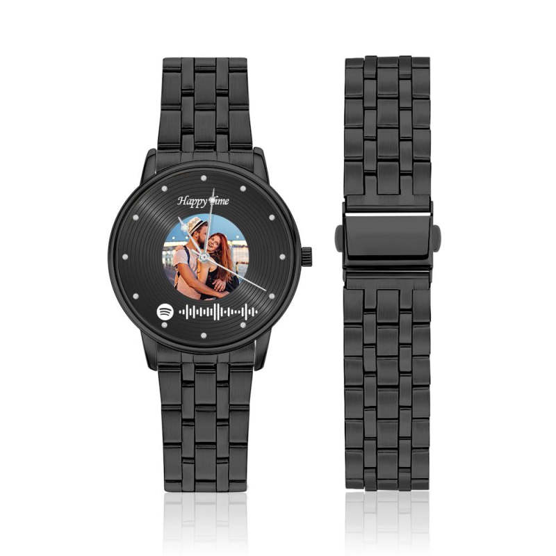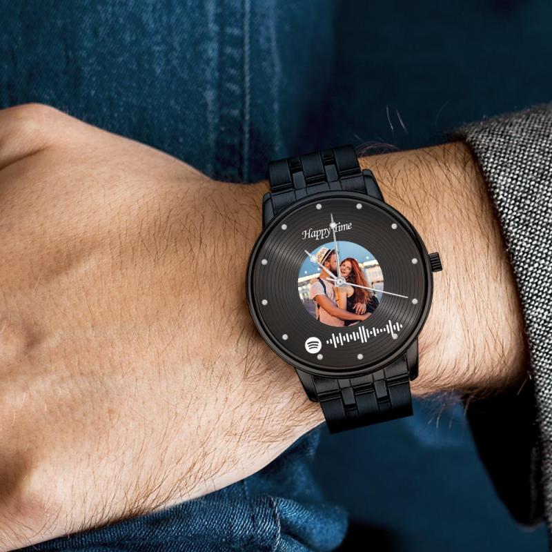 Photo Scannable Spotify Code Watch Vintage Vinyl Records Design Watch Gifts For Couples
