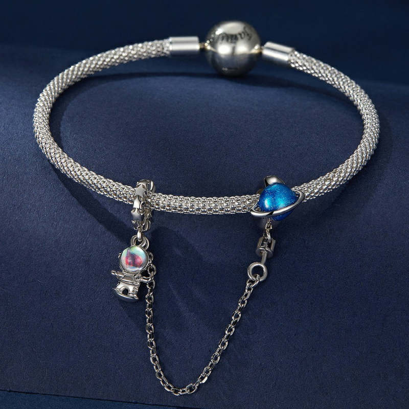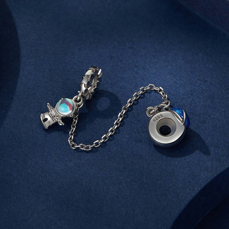 Planet Astronaut Safety Charm Chain Silver