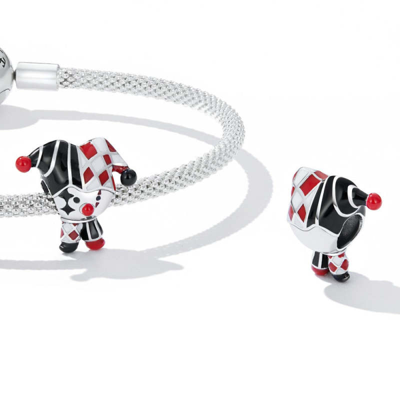 Playing Card Joker Enamel Charm Silver