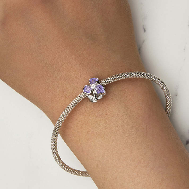 Purple Flower Charm Silver