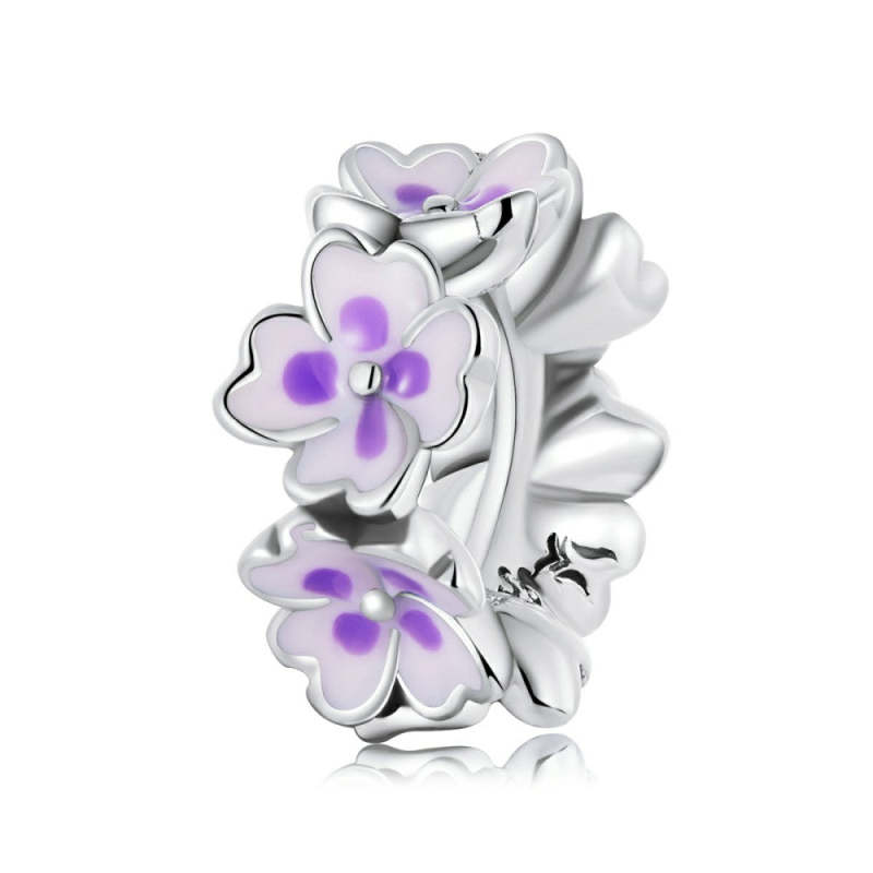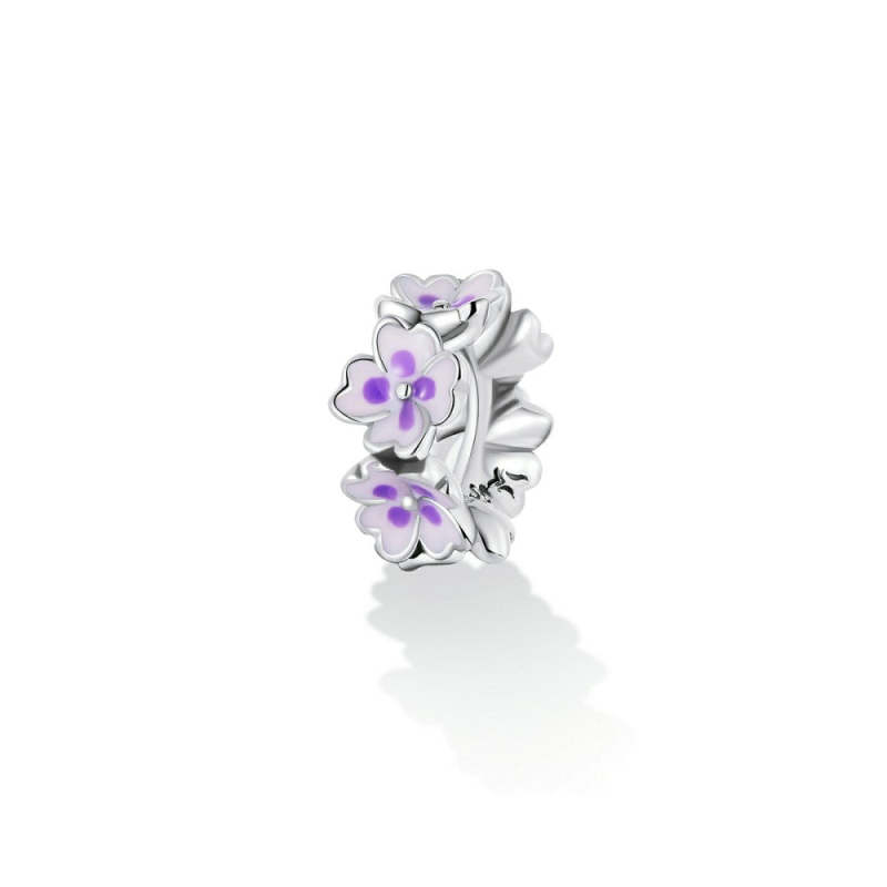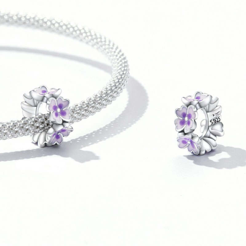 Purple Flowers Stopper Charm Spacer Charm Silver