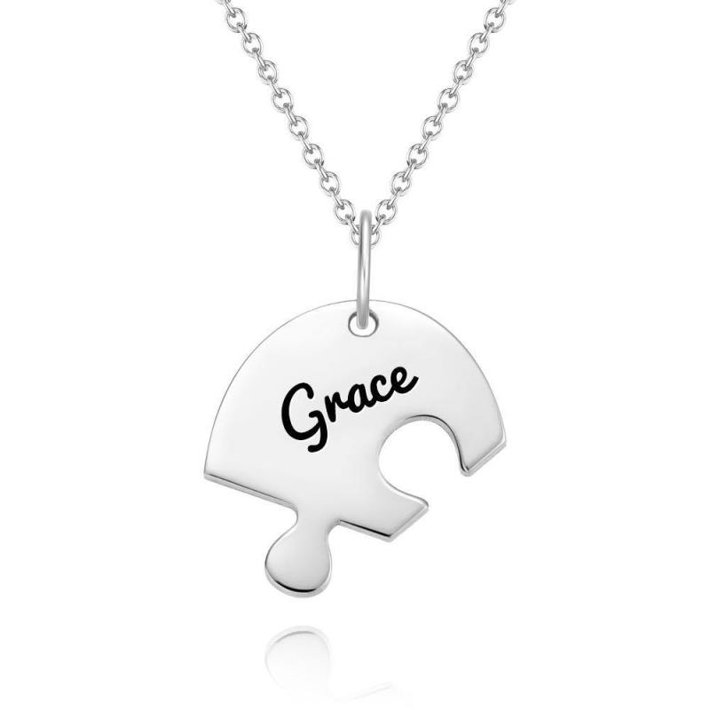 Puzzle Necklace Family Necklace Engraved Necklace 14k Gold Plated Silver