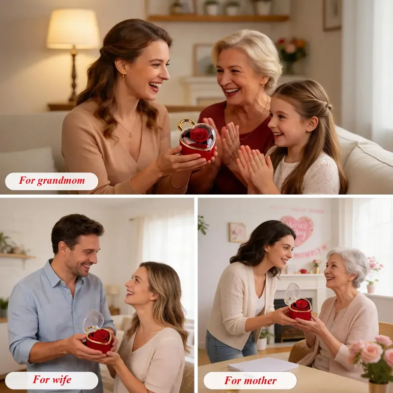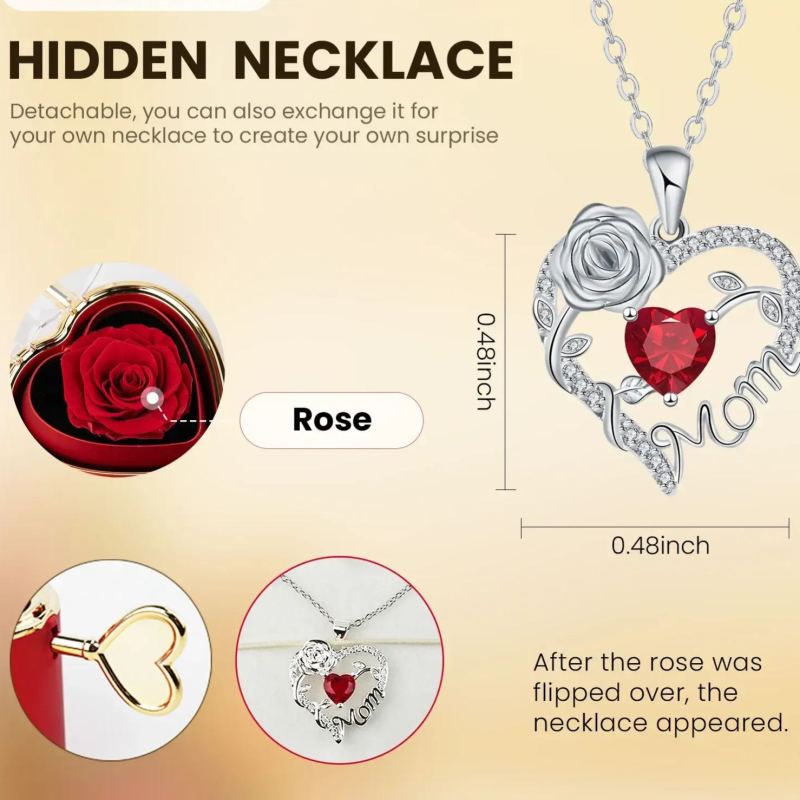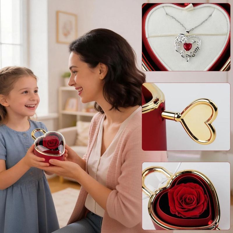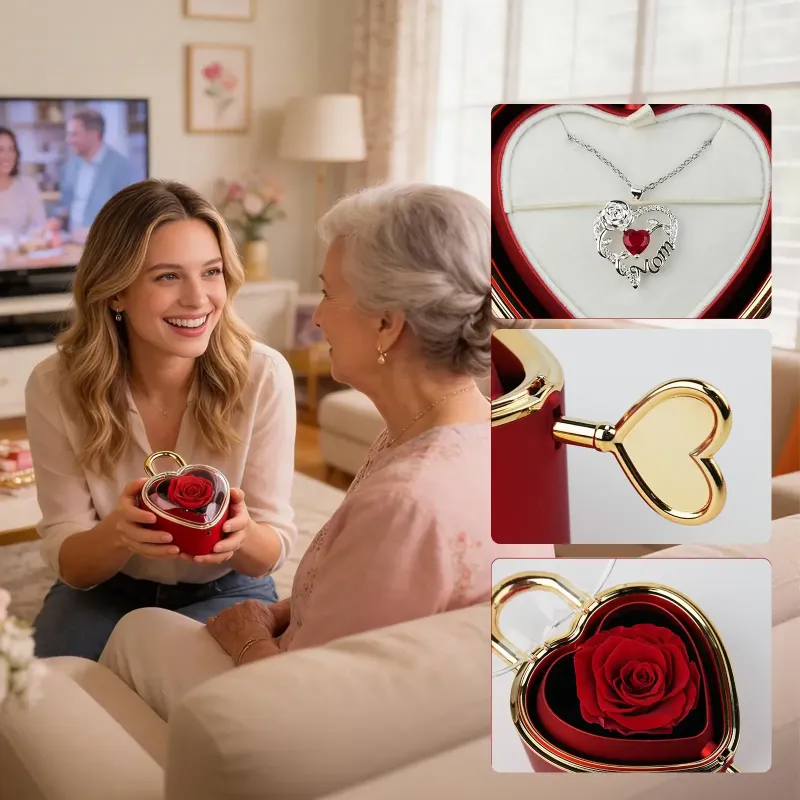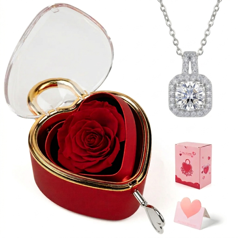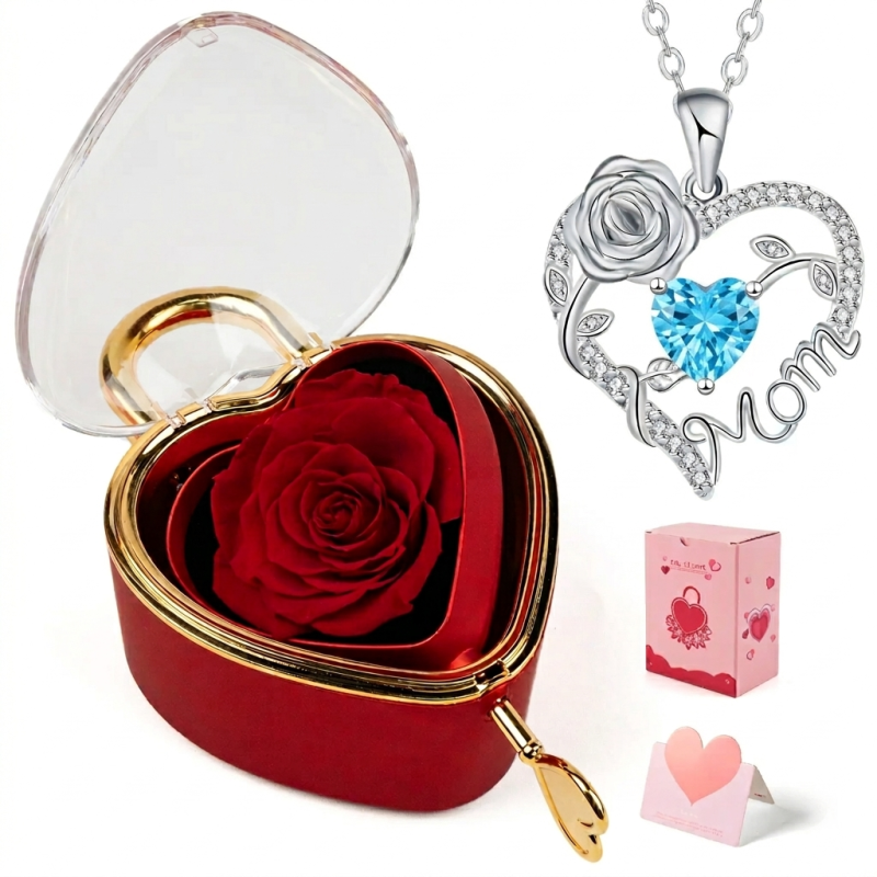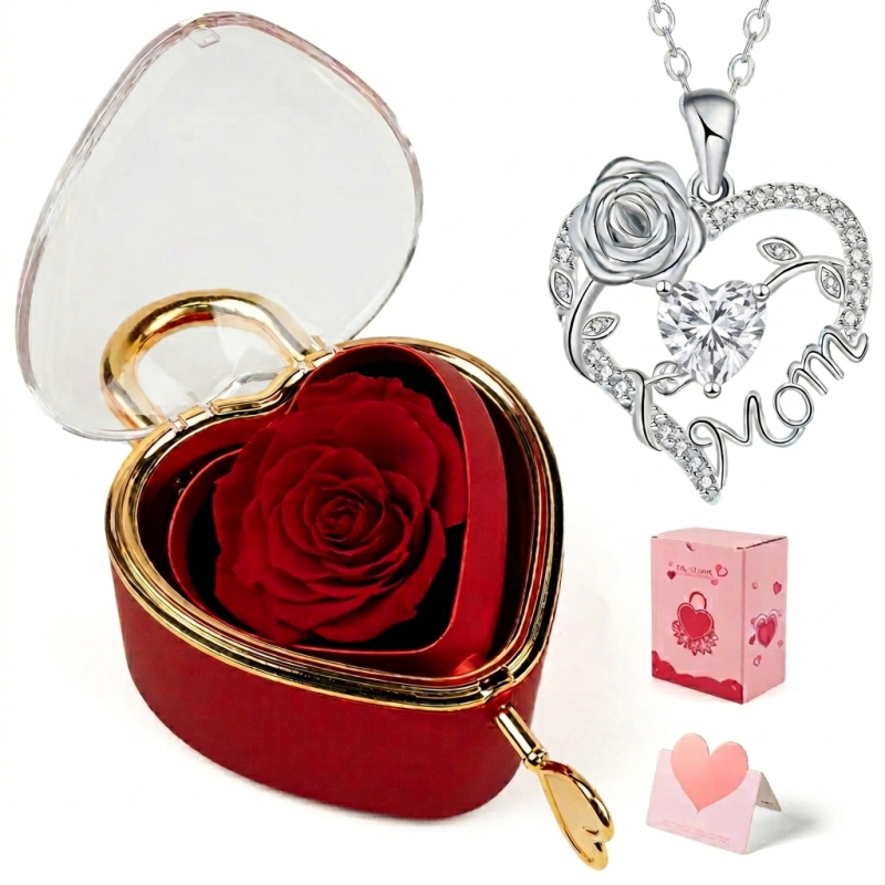 This rose jewelry gift box is a delightful choice for mom or grandma. It contains a heart-shaped rose pendant necklace, making it an ideal present for Mother’s Day or Valentine’s Day. The heart necklace adds a touch of love and affection to any occasion.