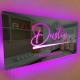 What’s in the box:Personalised name mirror with LED lighting, made from lightweight, shatterproof acrylic. Includes remote control and wall mounting stand-offs.