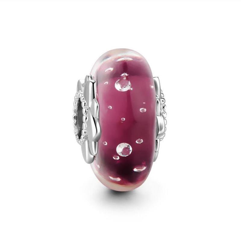 Purple Drop Water Charm Murano Glass Bead Silver