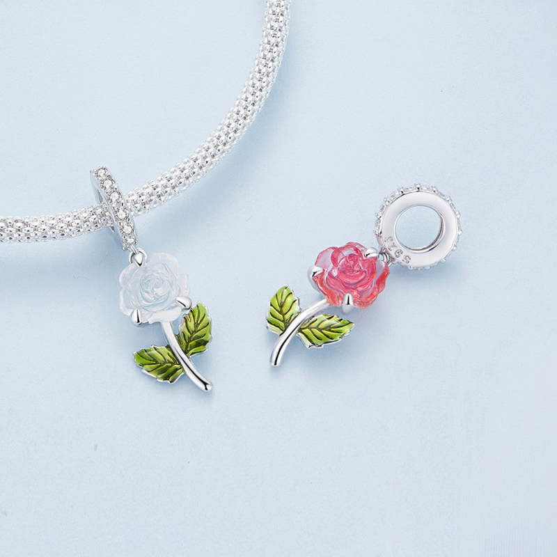 Rose Dangle Charm Silver
