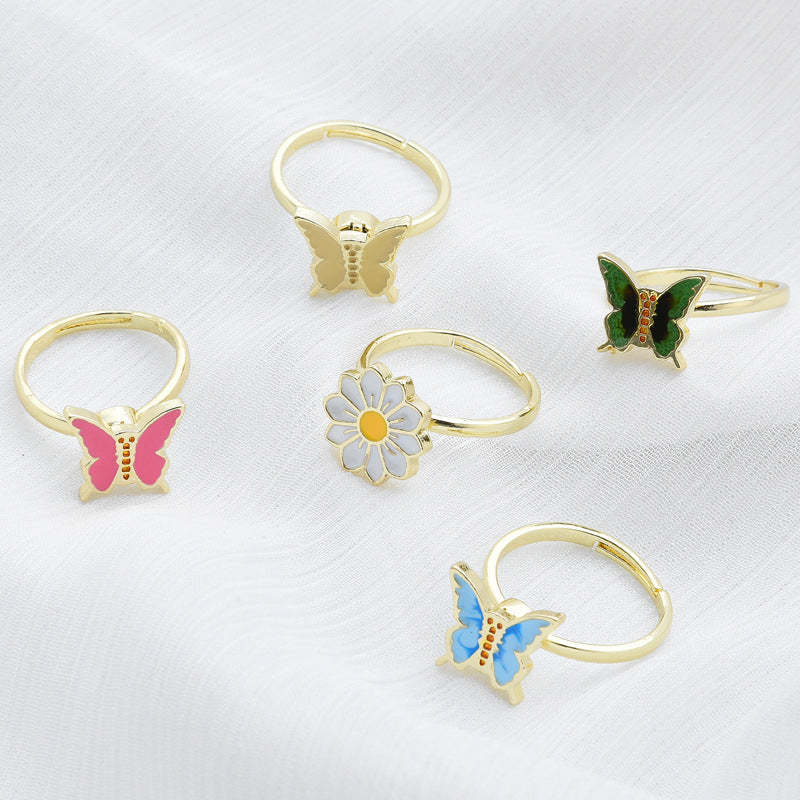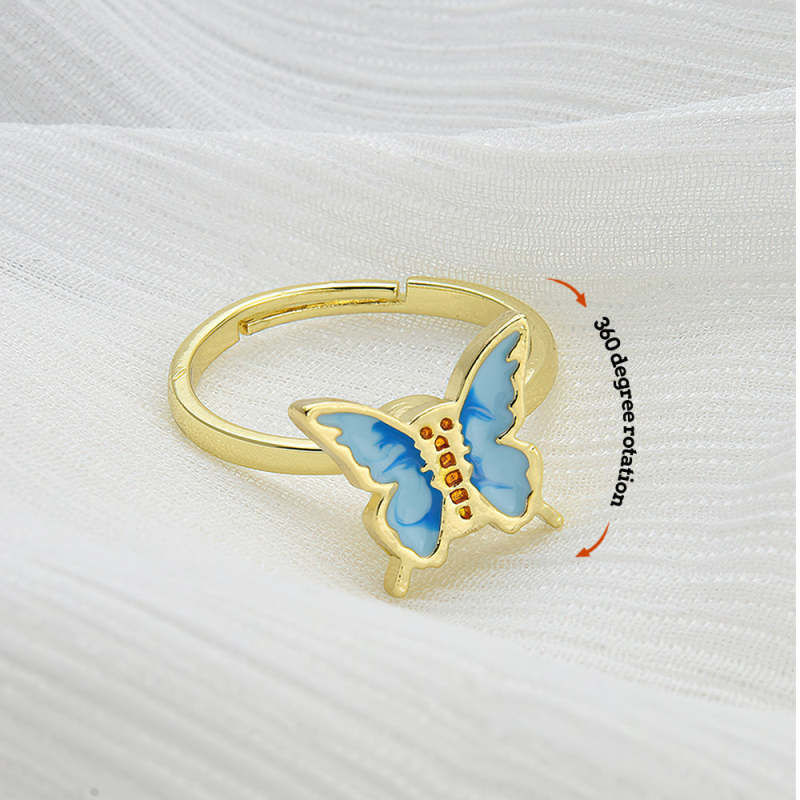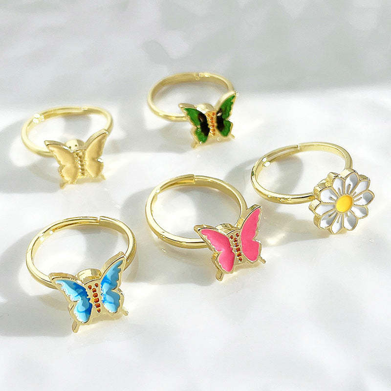 Anxiety Relief Decompression Butterfly Ring Daisy Opening Adjustable Ring Gift for Women