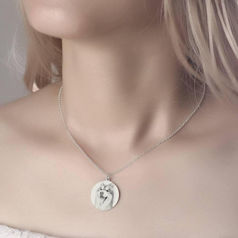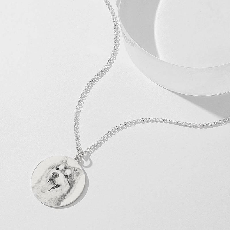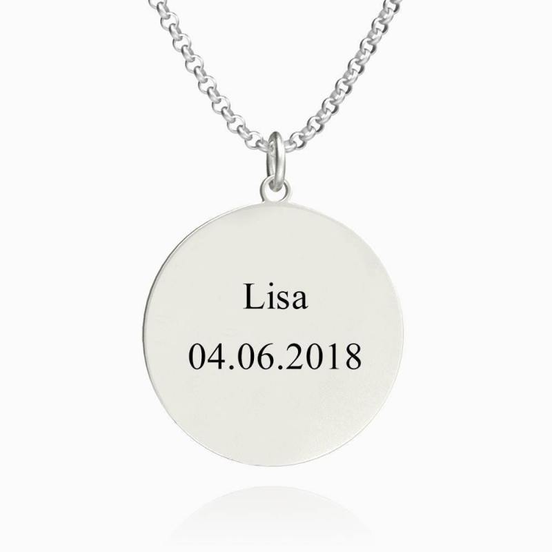 Women's Round Photo Engraved Tag Necklace with Engraving Silver