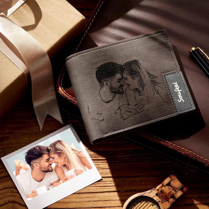Scannable Music Code Wallet Photo Engraved Wallet Custom Music Song Wallet Memorial Gifts