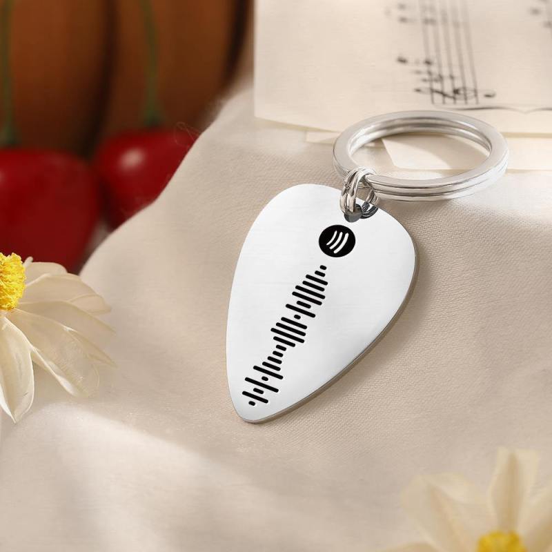 Scannable Spotify Code Guitar Pick Keychain, Engraved Custom Music Song Keychain Gifts for Him
