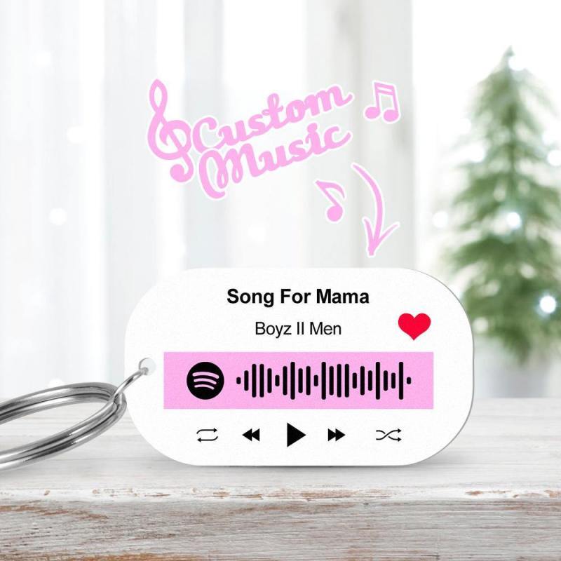 Scannable Spotify Code Keychain Spotify Favorite Song Engraved Keychain Gifts for Her Pink