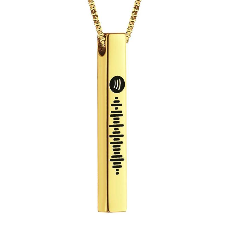 Scannable Spotify Code Necklace 3D Engraved Vertical Bar Necklace Gifts for Girlfriend Rose Gold
