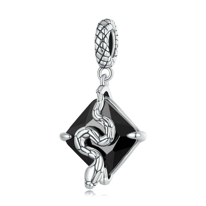 Snake on Black Dangle Charm Silver