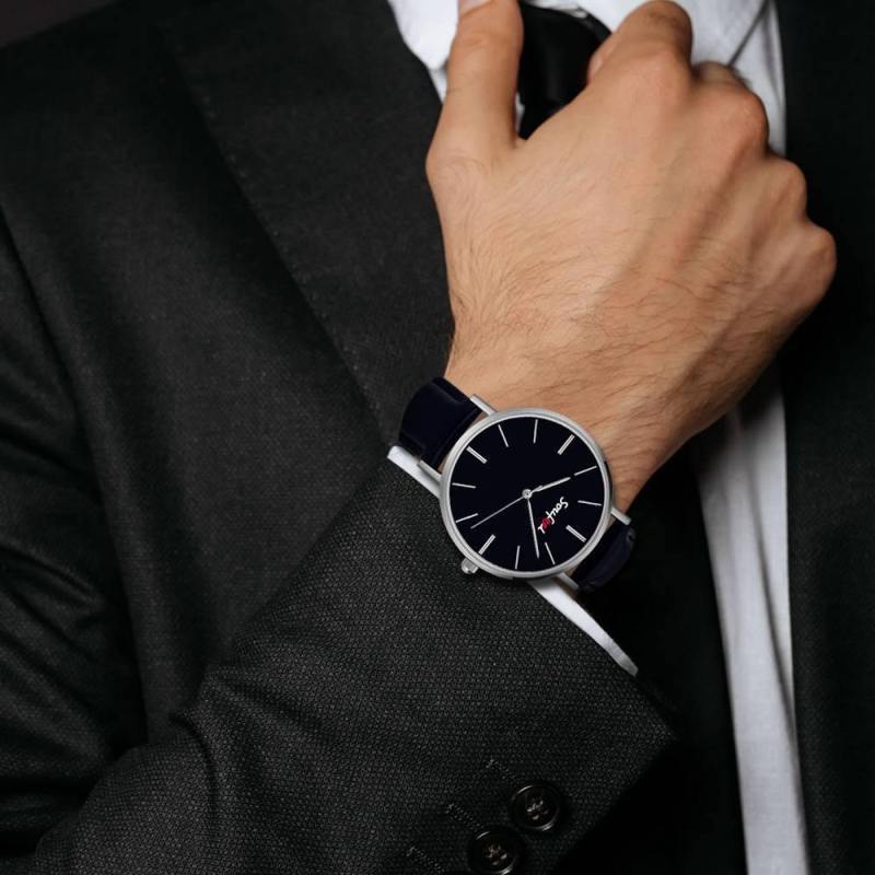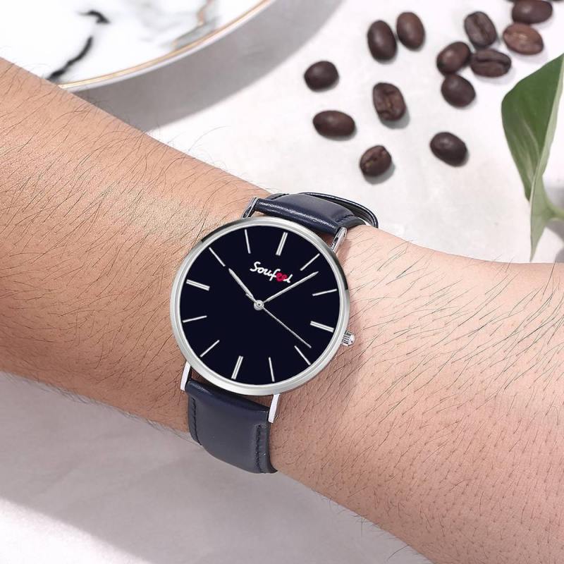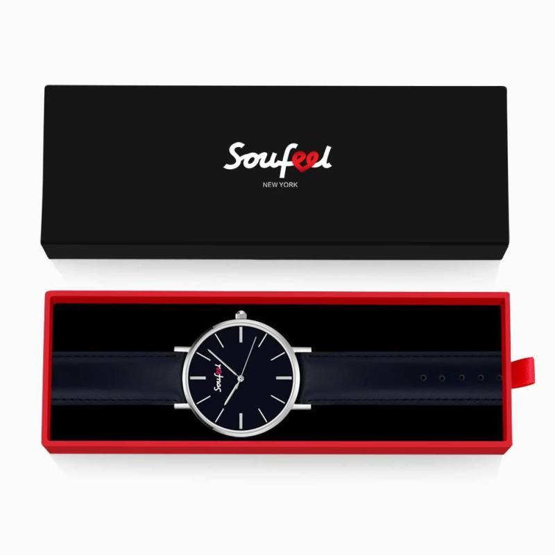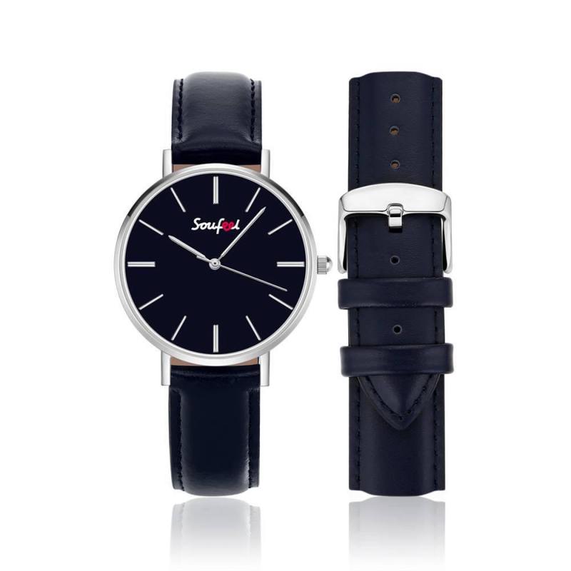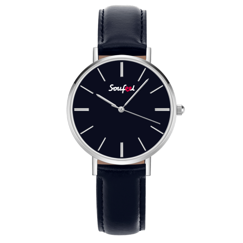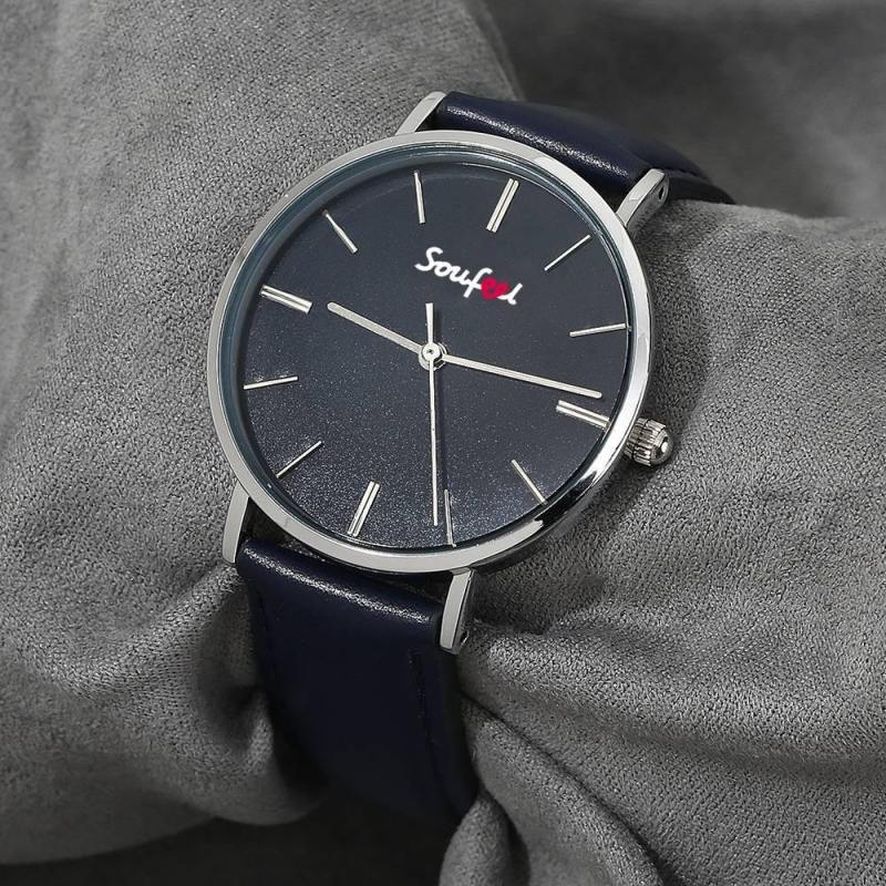 Soufeel Unisex Classic Watch Dark Blue Leather Strap 40mm