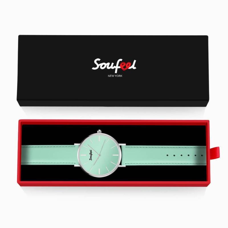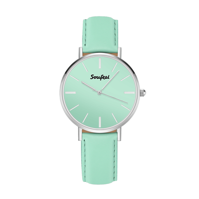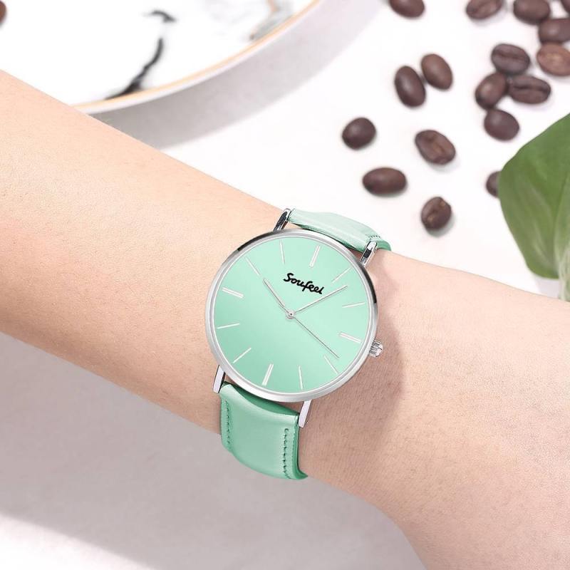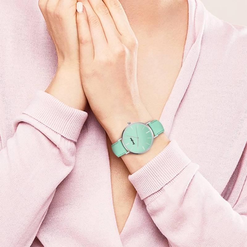 Soufeel Women's Classic Watch Light Green Leather Strap 36mm