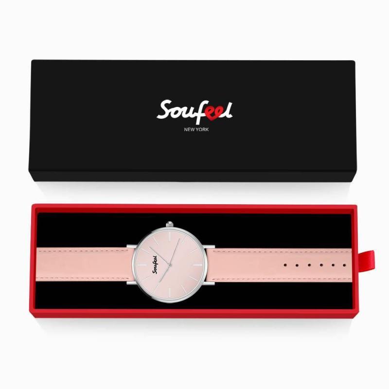 Soufeel Women's Classic Watch Pink Leather Strap 36mm