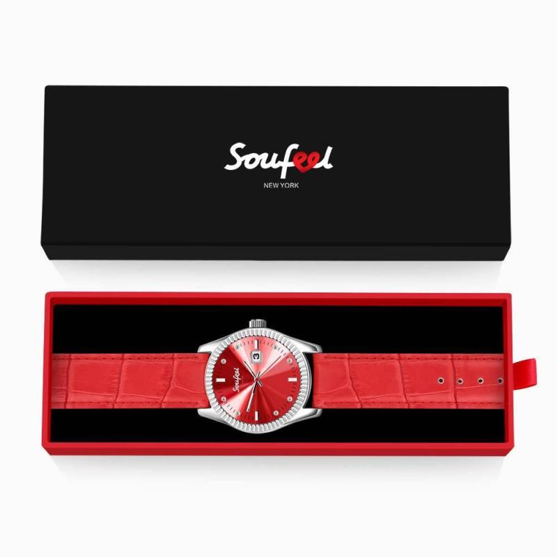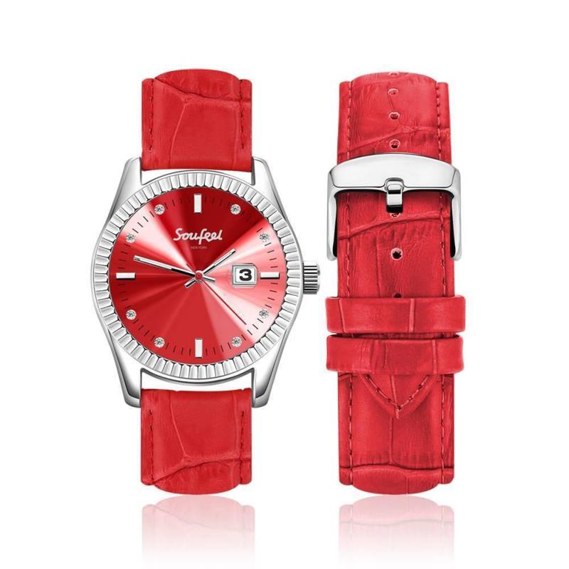 Soufeel Women's Soufeel Crystal Watch Red Leather Strap 38.5mm