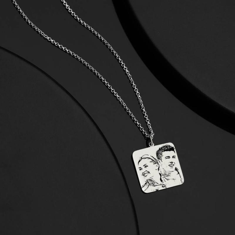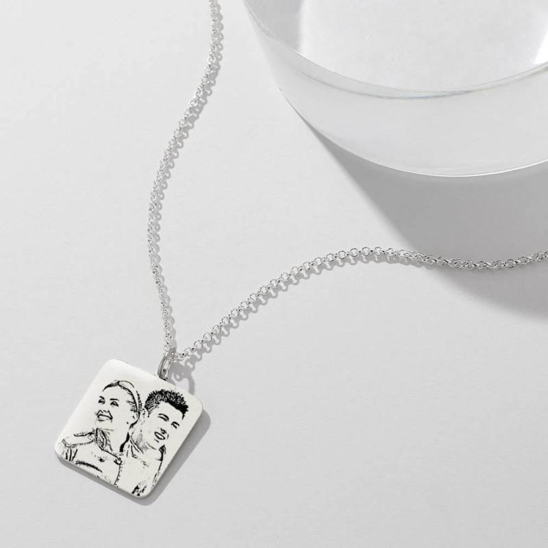 Women's Square Photo Engraved Tag Necklace with Engraving Silver