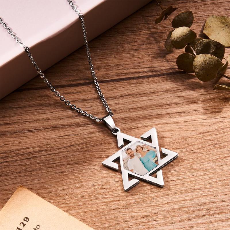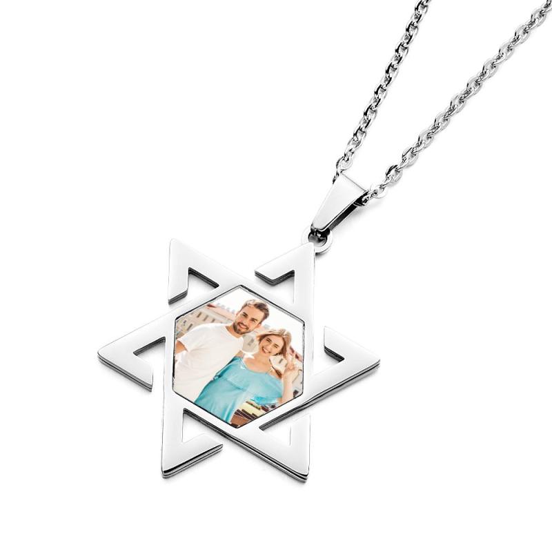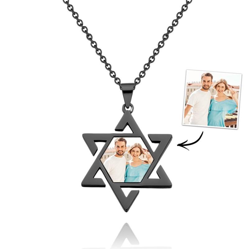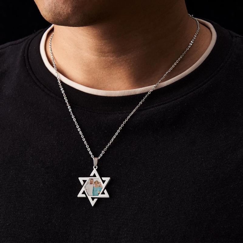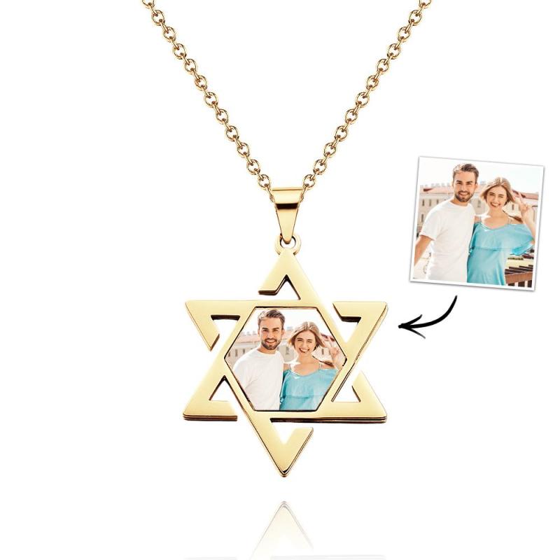 Enhance your style with our Star of David Necklaces. Crafted from high-quality stainless steel, these necklaces are available in four colors: Silver, Gold, Rose Gold, and Black. With a customizable picture, they make for a perfect gift for best friends. Suitable for any occasion, these necklaces are a symbol of elegance and quality.