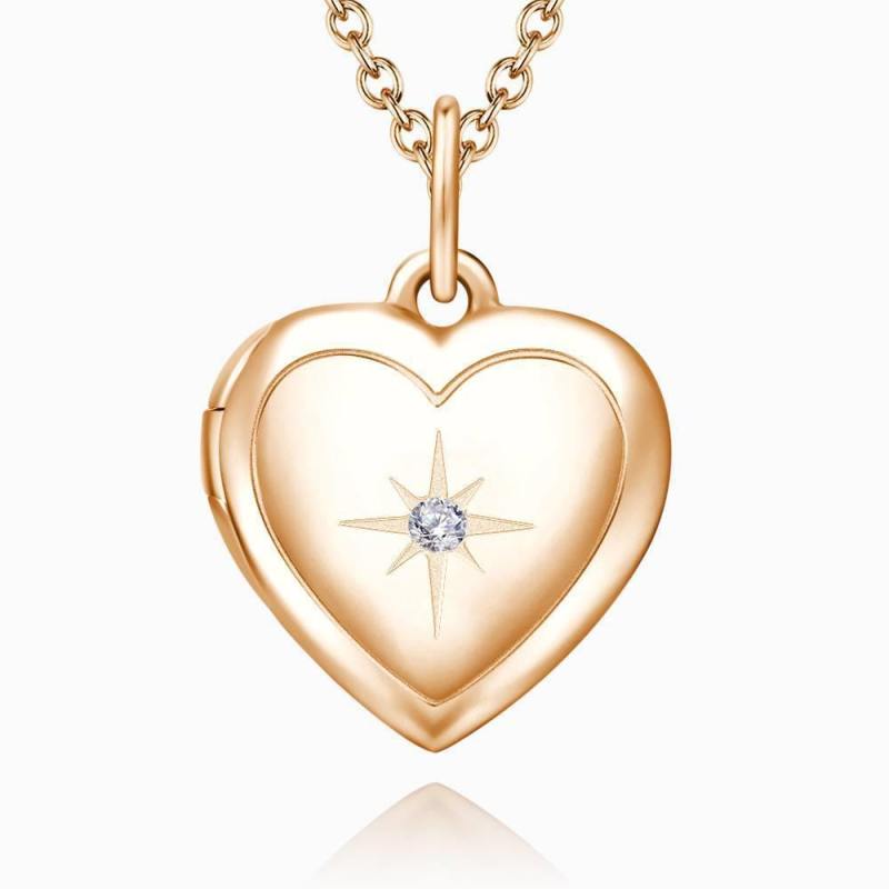 Star Printing Photo Locket Necklace Rose Gold Plated