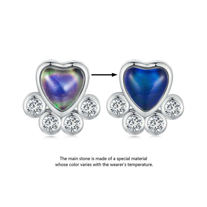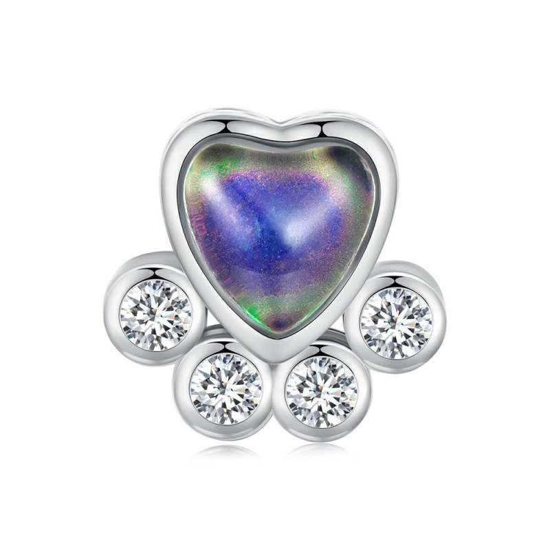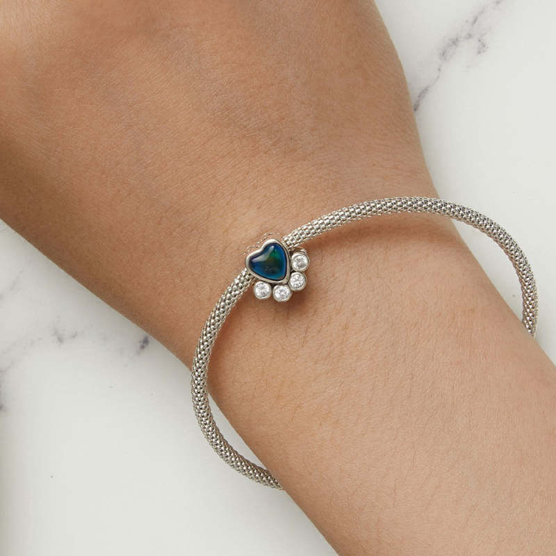 Temperature Discoloration Cute Pet Paw Prints Charm Silver